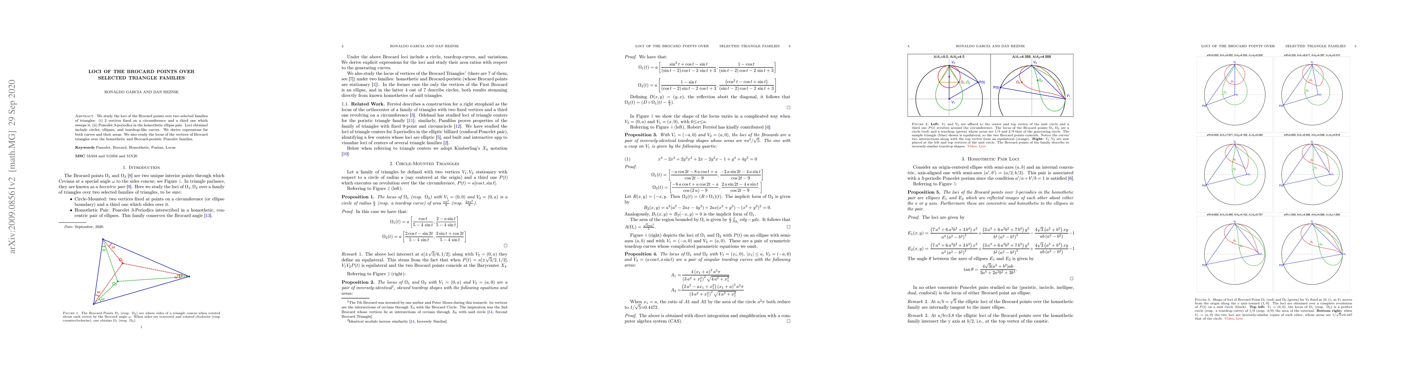 This paper investigates the loci of Brocard points for two specific triangle families: triangles with two fixed vertices on a circle and a third that moves along it, and Poncelet triangles in a homothetic ellipse pair. The study reveals circular, elliptical, and teardrop-like loci, providing expressions and areas for these curves and examining the vertices of Brocard triangles in related families.