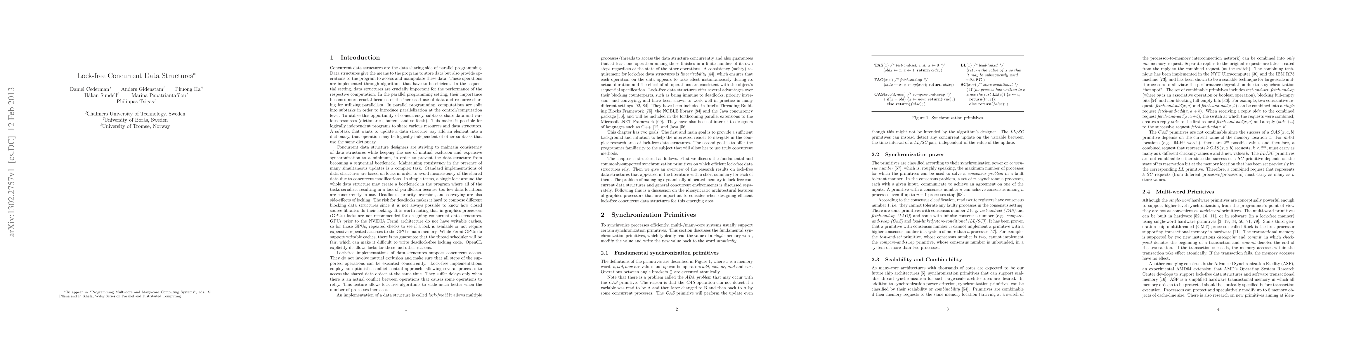 Concurrent data structures are the data sharing side of parallel programming. Data structures give the means to the program to store data, but also provide operations to the program to access and manipulate these data. These operations are implemented through algorithms that have to be efficient. In the sequential setting, data structures are crucially important for the performance of the respective computation. In the parallel programming setting, their importance becomes more crucial because of the increased use of data and resource sharing for utilizing parallelism. The first and main goal of this chapter is to provide a sufficient background and intuition to help the interested reader to navigate in the complex research area of lock-free data structures. The second goal is to offer the programmer familiarity to the subject that will allow her to use truly concurrent methods.
