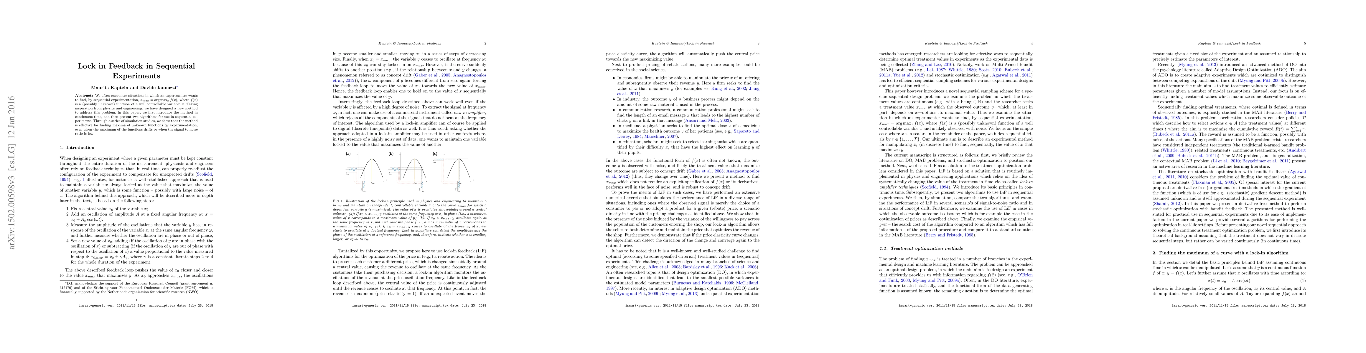 We often encounter situations in which an experimenter wants to find, by sequential experimentation, $x_{max} = \arg\max_{x} f(x)$, where $f(x)$ is a (possibly unknown) function of a well controllable variable $x$. Taking inspiration from physics and engineering, we have designed a new method to address this problem. In this paper, we first introduce the method in continuous time, and then present two algorithms for use in sequential experiments. Through a series of simulation studies, we show that the method is effective for finding maxima of unknown functions by experimentation, even when the maximum of the functions drifts or when the signal to noise ratio is low.