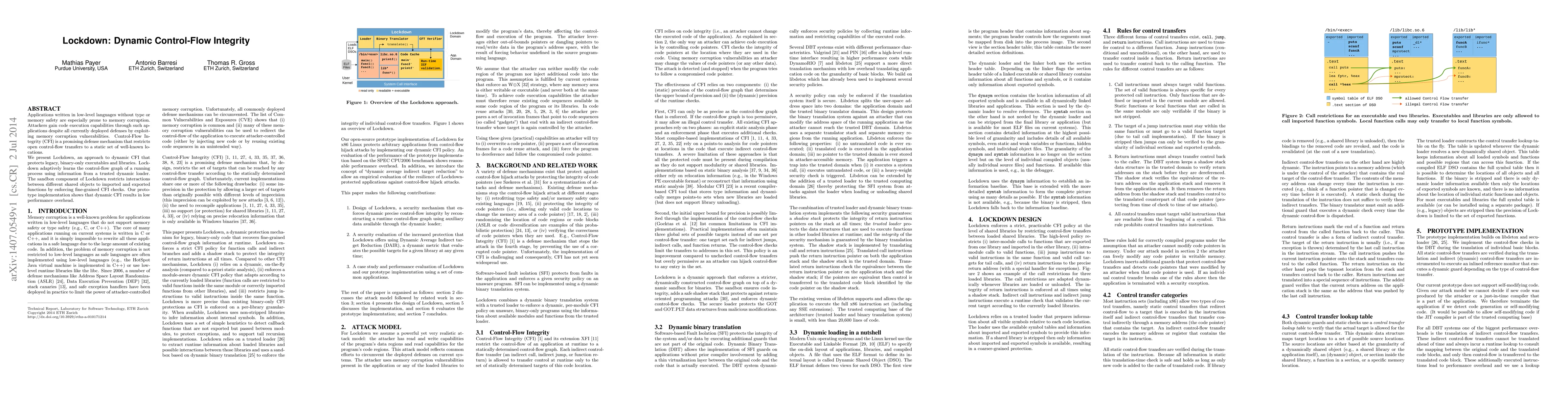 Lockdown is a dynamic Control-Flow Integrity (CFI) approach that protects legacy binaries by adaptively learning and enforcing control-flow integrity checks during runtime, demonstrating low performance overhead. It restricts interactions between shared objects to secure imported and exported functions, effectively mitigating memory corruption vulnerabilities.