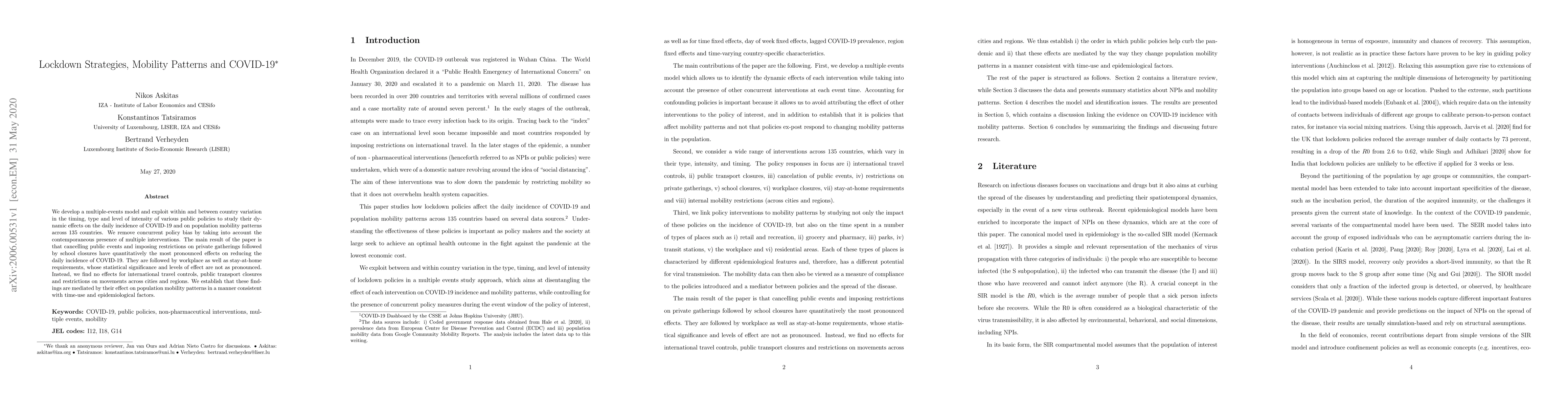 This paper examines the dynamic effects of various lockdown strategies on COVID-19 incidence and population mobility across 135 countries. The study finds that cancelling public events and imposing restrictions on private gatherings, followed by school closures, have the most significant impact on reducing COVID-19 cases, while international travel controls show no effect.