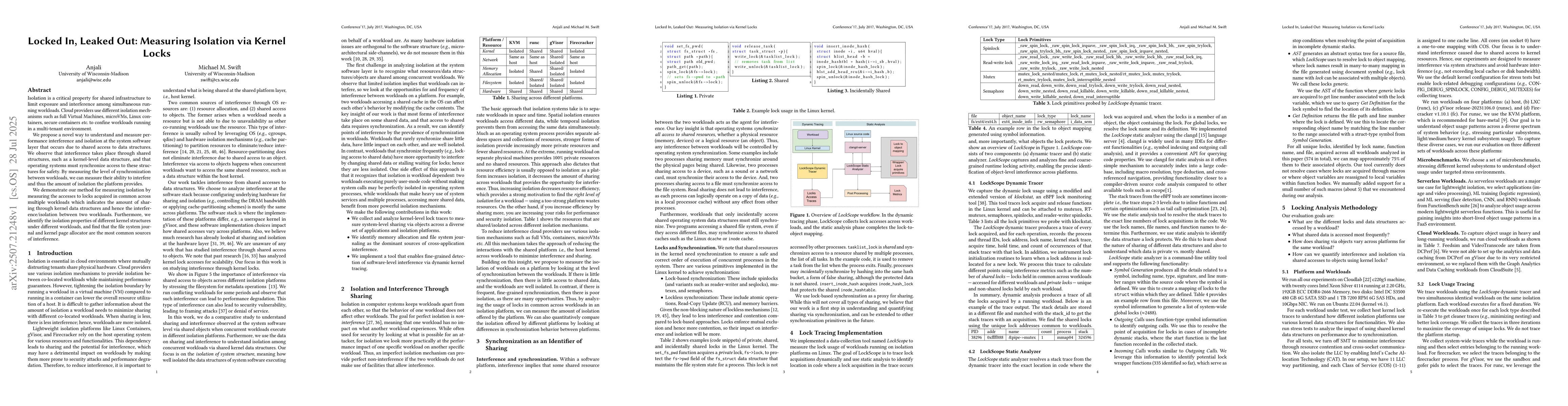 Isolation is a critical property for shared infrastructure to limit exposure and interference among simultaneous running workloads. Cloud providers use different isolation mechanisms such as full Virtual Machines, microVMs, Linux containers, secure containers, etc., to confine workloads running in a multi-tenant environment. We propose a novel way to understand and measure performance interference and isolation at the system software layer that occurs due to shared access to data structures. We observe that interference takes place through shared structures, such as a kernel-level data structure, and that operating systems must synchronize access to these structures for safety. By measuring the level of synchronization between workloads, we can measure their ability to interfere and thus the amount of isolation the platform provides We demonstrate our method for measuring isolation by measuring the accesses to locks acquired in common across multiple workloads which indicates the amount of sharing through kernel data structures and hence the interference/isolation between two workloads. Furthermore, we identify the isolation properties of different kernel structures under different workloads and find that the file system journal and kernel page allocator are the most common sources of interference.