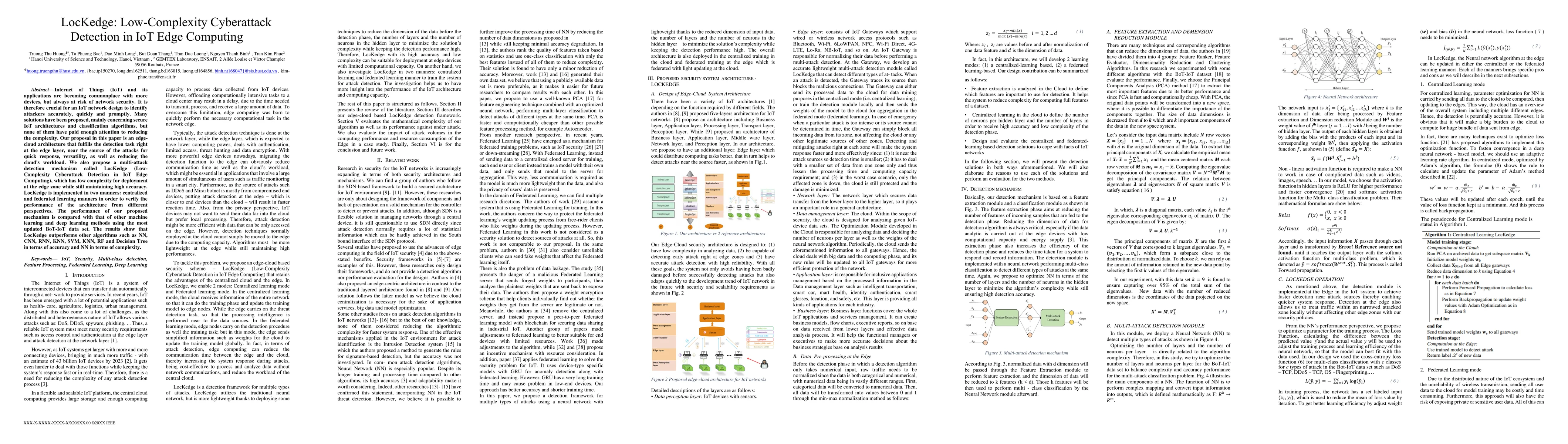 This research paper proposes a low-complexity cyberattack detection system called LocKedge for IoT edge computing. The system aims to quickly and accurately identify attackers at the edge layer, reducing the complexity and workload on the cloud. LocKedge is implemented using both centralized and federated learning approaches and is shown to outperform other machine learning and deep learning methods in terms of accuracy and complexity.