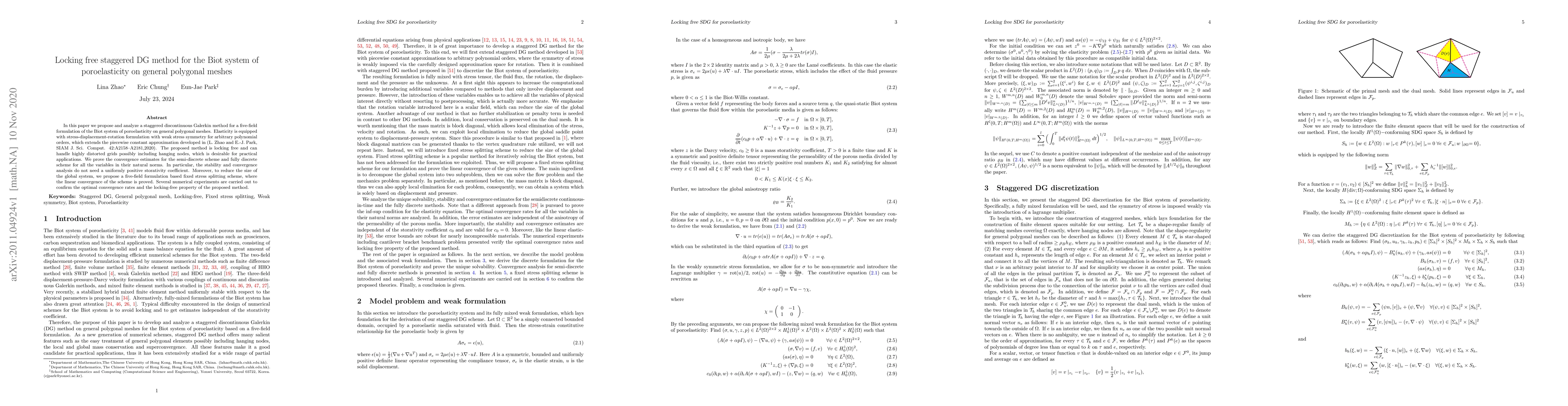 This paper proposes a locking-free staggered discontinuous Galerkin method for the Biot system of poroelasticity on general polygonal meshes, extending previous work to arbitrary polynomial orders. The method handles distorted grids and proves convergence estimates without requiring a uniformly positive storativity coefficient.