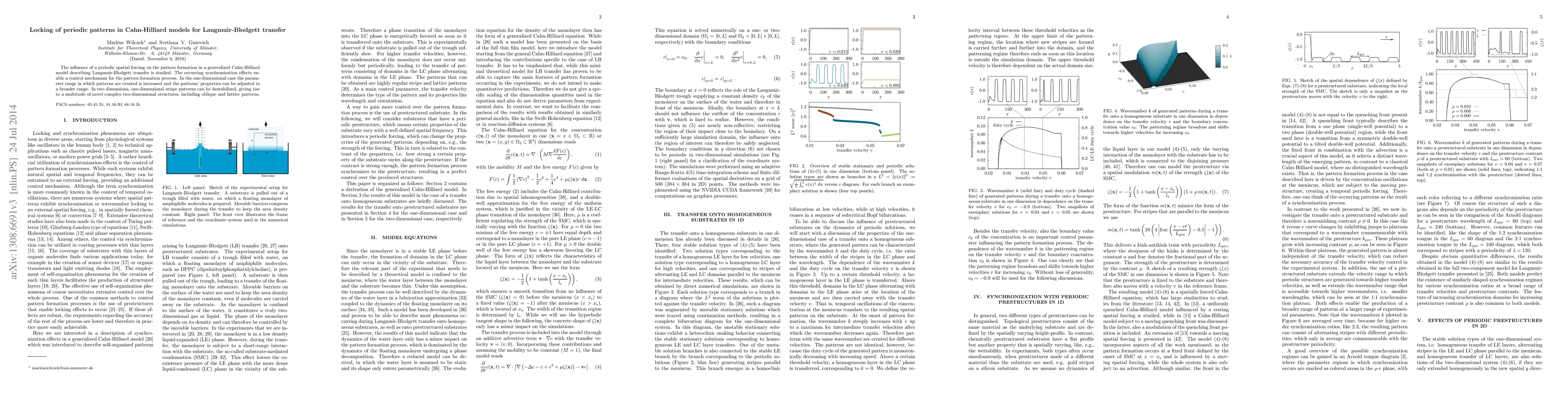 This paper investigates how periodic spatial forcing affects pattern formation in a generalized Cahn-Hilliard model, particularly in Langmuir-Blodgett transfer onto prestructured substrates. The study reveals that synchronization effects can enhance control over pattern formation, leading to increased pattern creation and adjustment in one dimension, and the emergence of diverse two-dimensional patterns, including oblique and lattice patterns, in two dimensions.