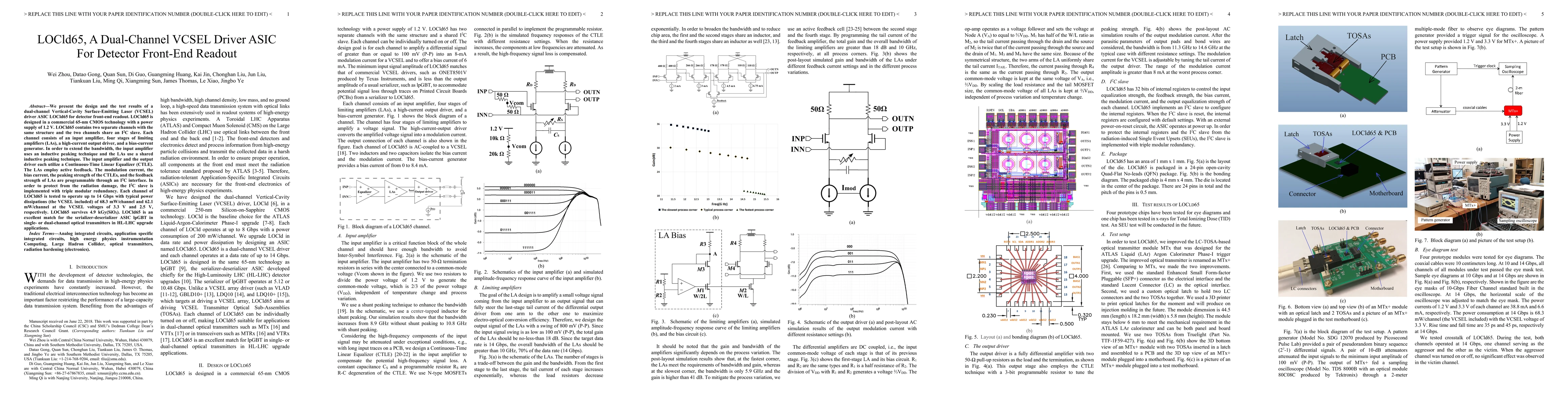 A new ASIC design, LOCld65, has been developed for high-speed detection in optical transmitters, capable of operating up to 14 Gbps with low power consumption.