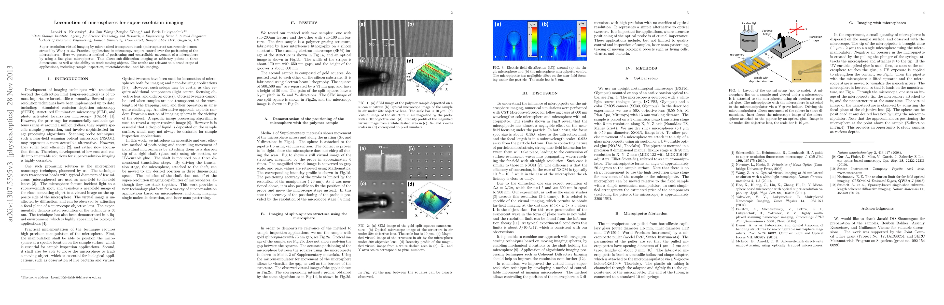 This paper presents a method for controlling the positioning and movement of microspheres using a glass micropipette, enabling sub-diffraction imaging in three dimensions and tracking of moving objects, which has broad applications in sample inspection and bio-imaging.