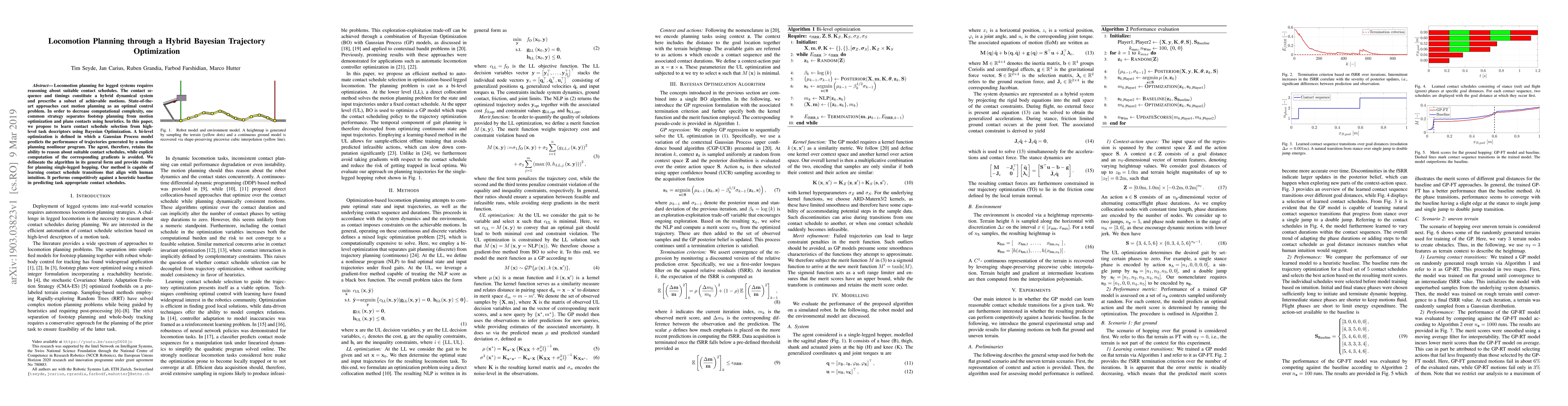 Locomotion planning for legged systems requires reasoning about suitable contact schedules. The contact sequence and timings constitute a hybrid dynamical system and prescribe a subset of achievable motions. State-of-the-art approaches cast motion planning as an optimal control problem. In order to decrease computational complexity, one common strategy separates footstep planning from motion optimization and plans contacts using heuristics. In this paper, we propose to learn contact schedule selection from high-level task descriptors using Bayesian optimization. A bi-level optimization is defined in which a Gaussian process model predicts the performance of trajectories generated by a motion planning nonlinear program. The agent, therefore, retains the ability to reason about suitable contact schedules, while explicit computation of the corresponding gradients is avoided. We delineate the algorithm in its general form and provide results for planning single-legged hopping. Our method is capable of learning contact schedule transitions that align with human intuition. It performs competitively against a heuristic baseline in predicting task appropriate contact schedules.