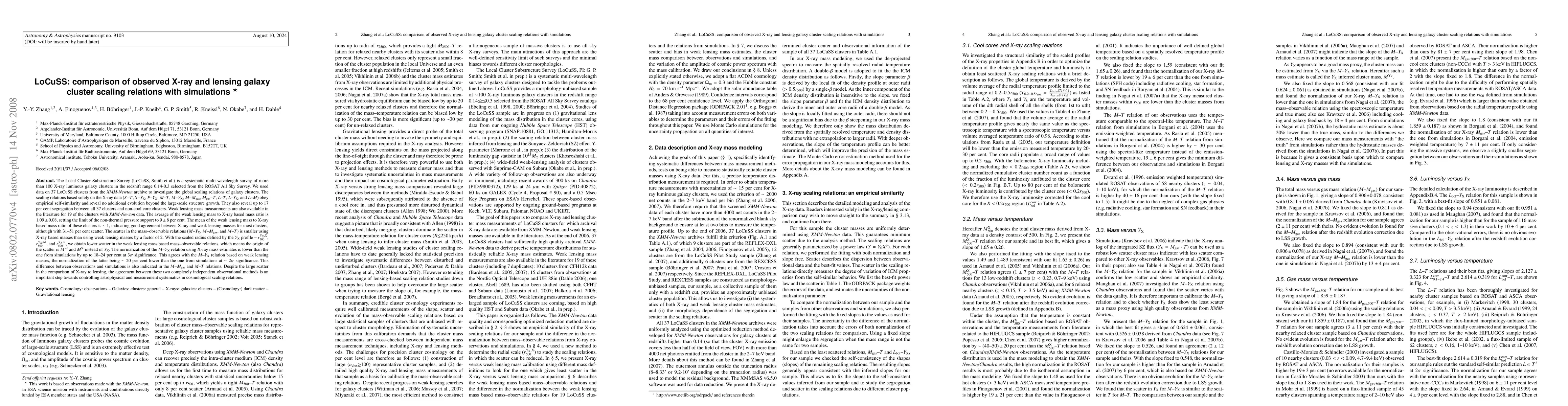 The LoCuSS survey investigates galaxy cluster scaling relations using X-ray and weak lensing data, finding that X-ray based masses show less scatter than lensing masses. The comparison between X-ray and lensing mass estimates reveals a normalization discrepancy with simulations, suggesting systematics in cosmological scaling relations.