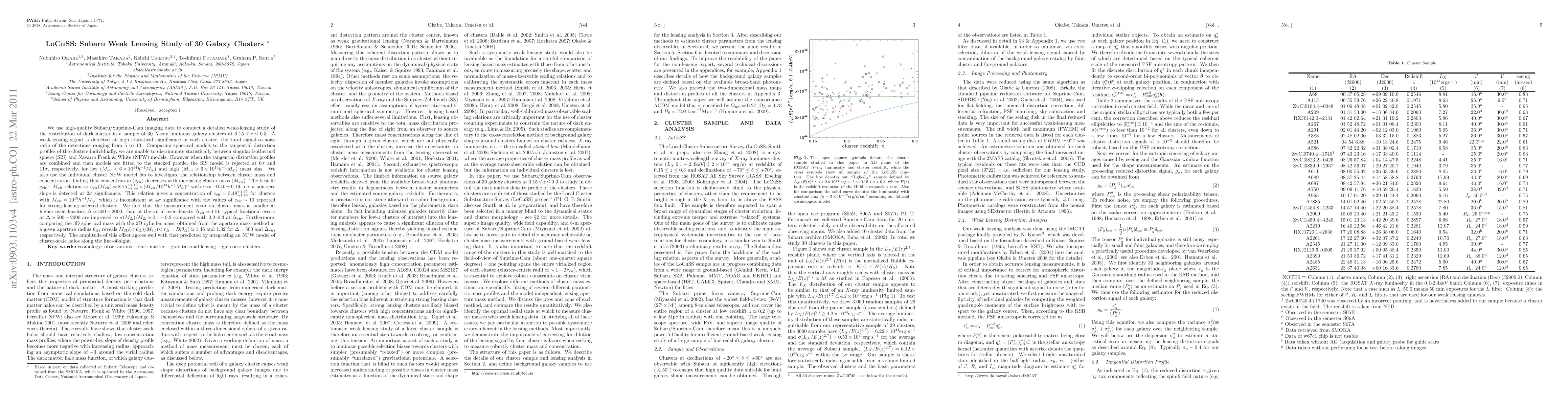This study uses Subaru data to analyze 30 galaxy clusters, detecting a weak lensing signal that favors the SIS model when combining individual cluster profiles.