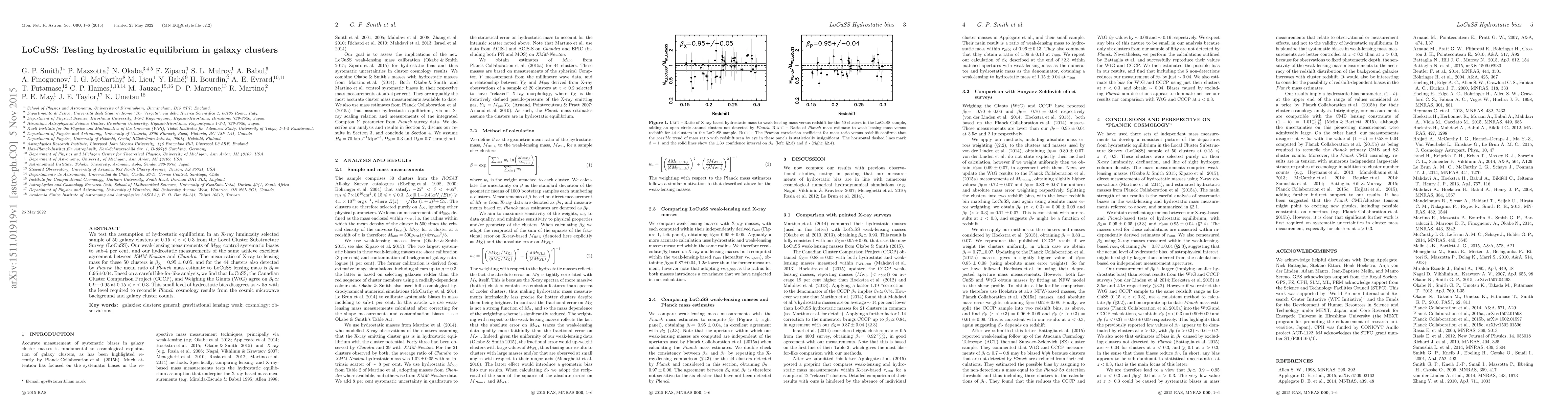 This paper tests hydrostatic equilibrium in 50 galaxy clusters using LoCuSS data, finding excellent agreement between weak-lensing and hydrostatic measurements. The study concludes that the small hydrostatic bias observed disagrees significantly with the bias needed to reconcile Planck cosmology results.