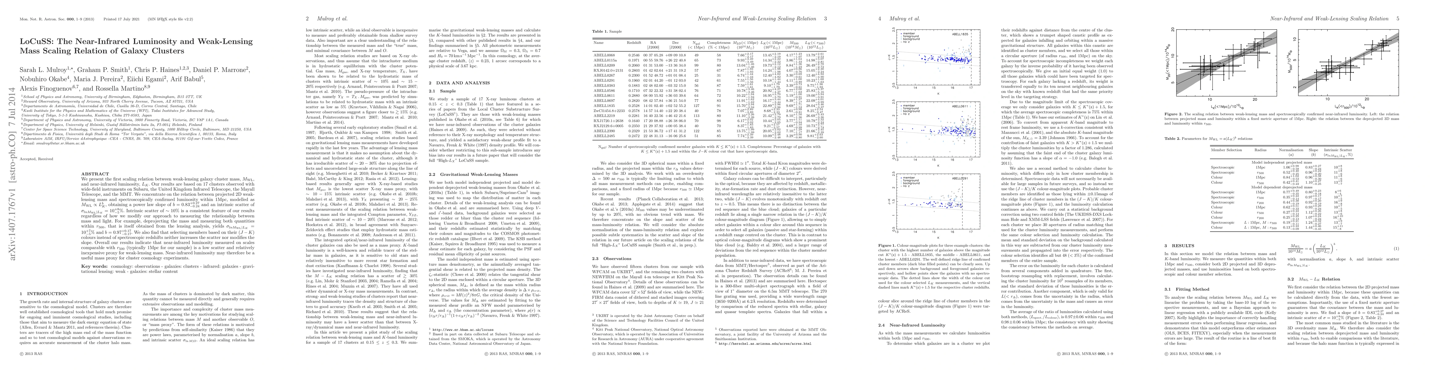 The LoCuSS study establishes a scaling relation between weak-lensing mass and near-infrared luminosity for 17 galaxy clusters, finding a power law slope of $b=0.83$ with intrinsic scatter of ~10%. Near-infrared luminosity within 1Mpc is a low-scatter, cost-effective proxy for weak-lensing mass, useful for cosmology experiments.