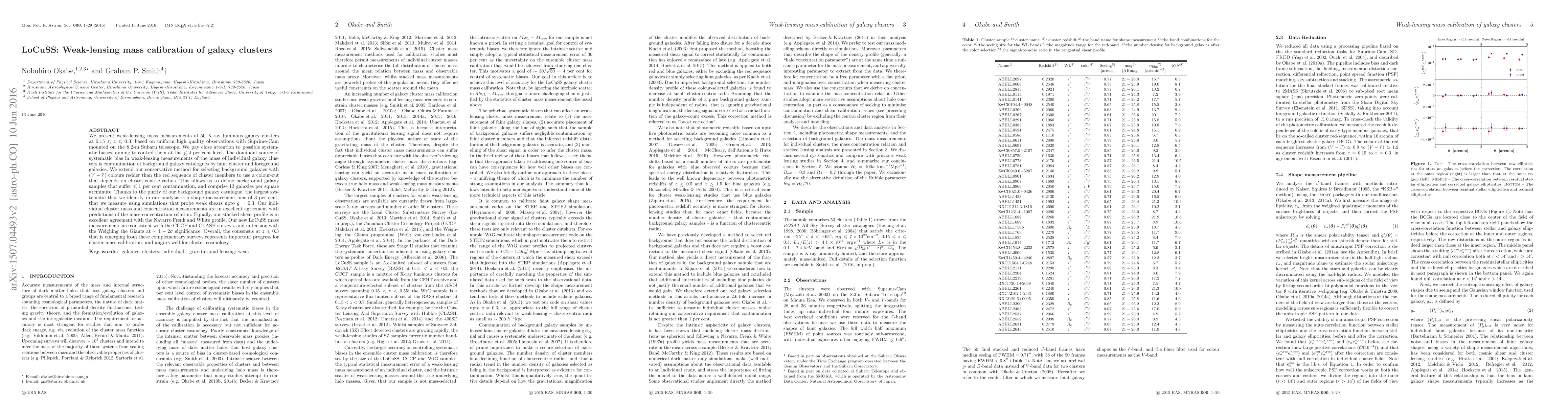 The LoCuSS study presents precise weak-lensing mass measurements for 50 X-ray luminous galaxy clusters, achieving systematic biases below 4%. The refined selection of background galaxies minimizes contamination, leading to a shape measurement bias of only 3%. The results align well with theoretical mass-concentration relations and other surveys, marking significant progress in cluster mass calibration.
