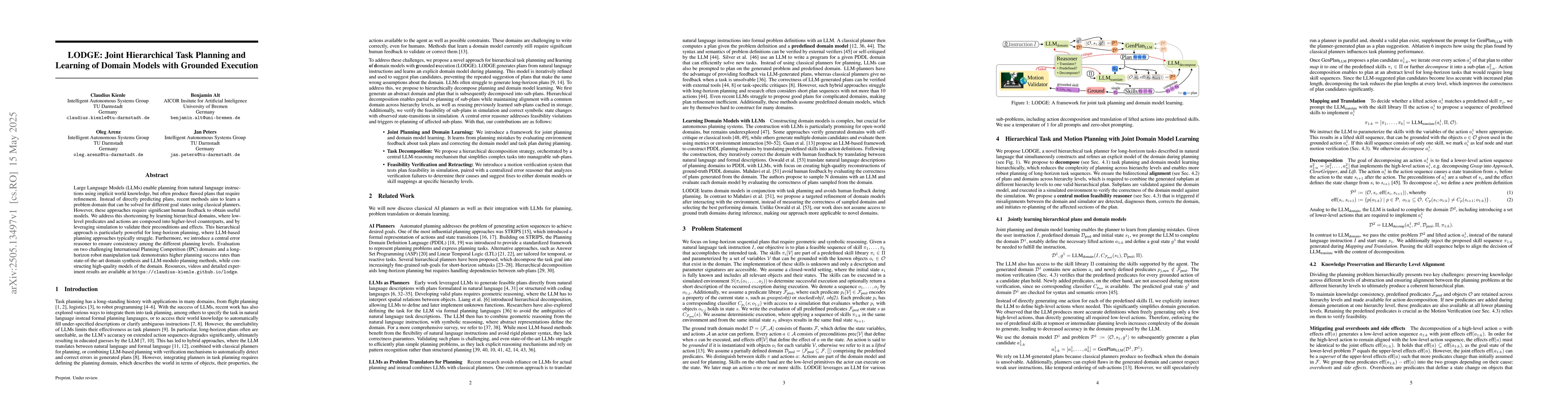 This paper introduces LODGE, a method that learns hierarchical domain models for long-horizon planning, achieving higher success rates than state-of-the-art methods in challenging domains and tasks.