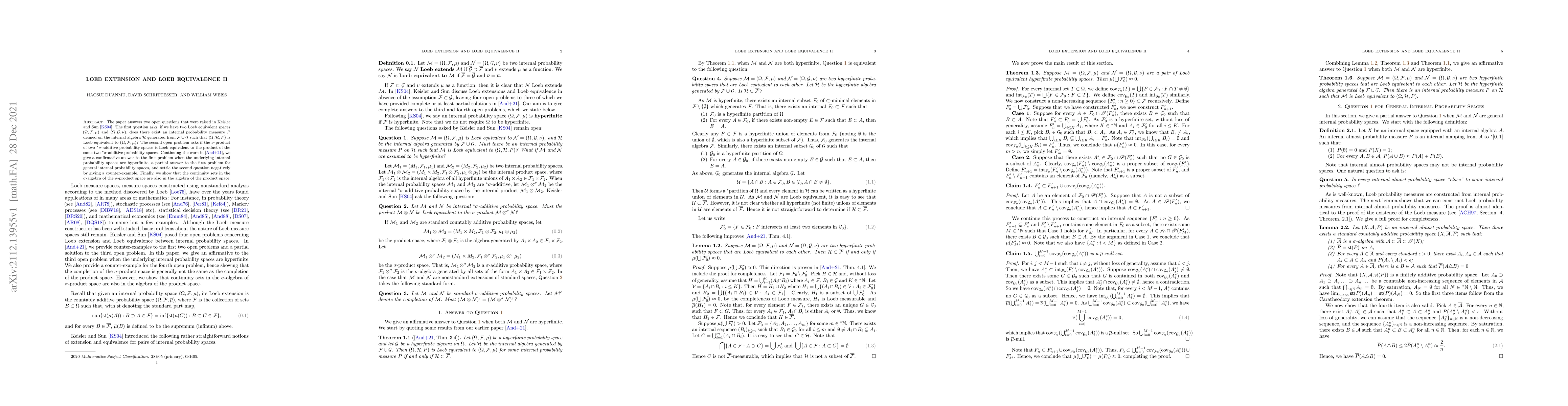 The paper answers two open questions that were raised in by Keisler and Sun. The first question asks, if we have two Loeb equivalent spaces $(\Omega, \mathcal F, \mu)$ and $(\Omega, \mathcal G, \nu)$, does there exist an internal probability measure $P$ defined on the internal algebra $\mathcal H$ generated from $\mathcal F\cup \mathcal G$ such that $(\Omega, \mathcal H, P)$ is Loeb equivalent to $(\Omega, \mathcal F, \mu)$? The second open problem asks if the $\sigma$-product of two $\sigma$-additive probability spaces is Loeb equivalent to the product of the same two $\sigma$-additive probability spaces. Continuing work in a previous paper, we give a confirmative answer to the first problem when the underlying internal probability spaces are hyperfinite, a partial answer to the first problem for general internal probability spaces, and settle the second question negatively by giving a counter-example. Finally, we show that the continuity sets in the $\sigma$-algebra of the $\sigma$-product space are also in the algebra of the product space.