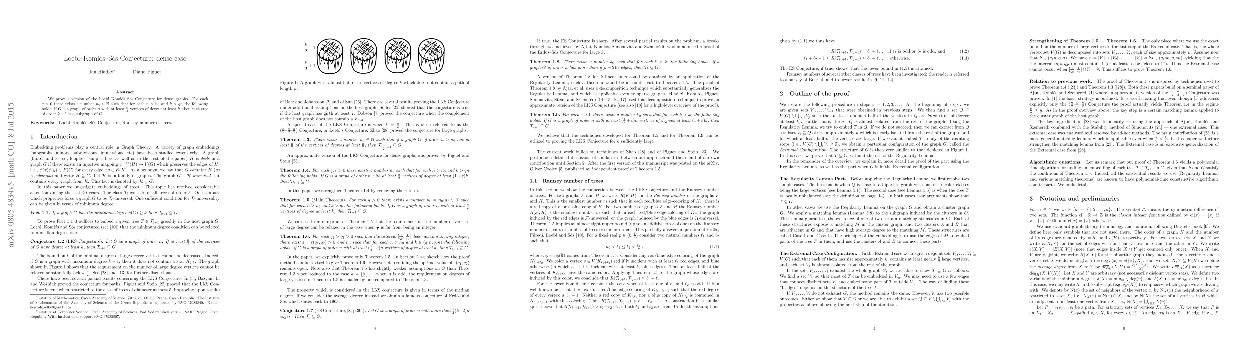 The paper proves a dense version of the Loebl-Komlos-Sos Conjecture, showing that for any q > 0, there exists a threshold n_0 such that for any graph G of order n > n_0 with at least n/2 vertices of degree at least k > qn, any tree of order k+1 is guaranteed to be a subgraph of G.