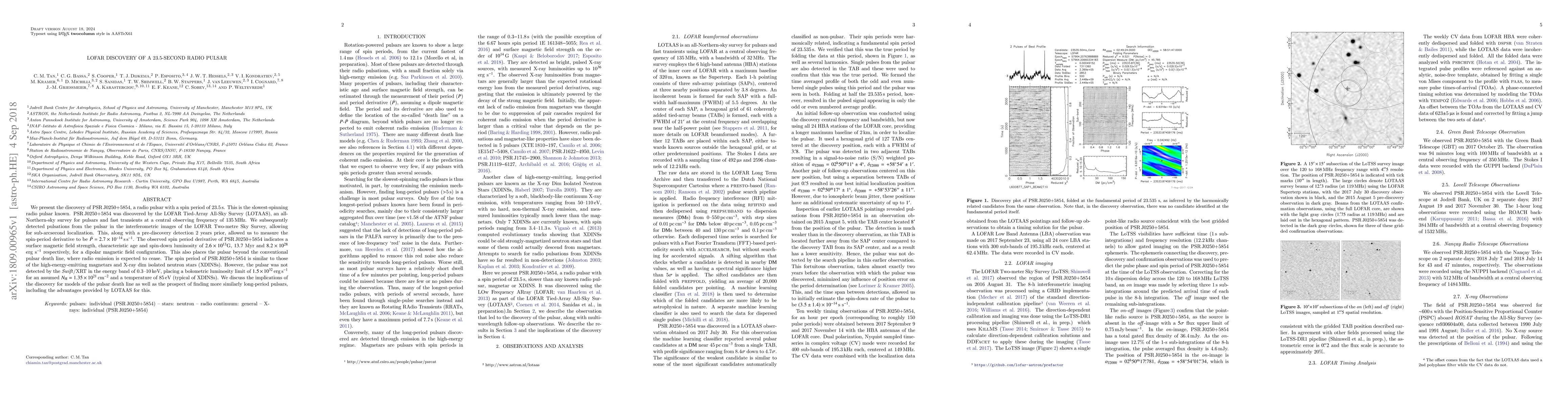 The LOFAR survey discovered PSR J0250+5854, the slowest-spinning radio pulsar known with a 23.5-second period, challenging the pulsar death line. Its detection and localization suggest a high magnetic field and unique spin-down characteristics, though it remains undetected in X-rays.