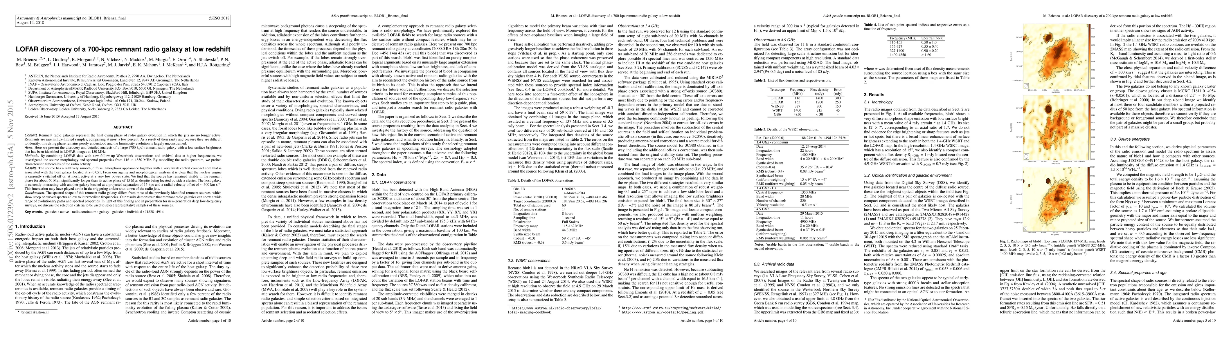 The LOFAR discovery of a 700-kpc remnant radio galaxy at low redshift reveals a diffuse, low-surface-brightness source with a weak central core, indicating the nuclear engine is inactive or active at a low power. The galaxy's interaction with a nearby galaxy may have influenced the shutdown of the radio jets, highlighting the importance of such interactions in the evolution of radio galaxies.