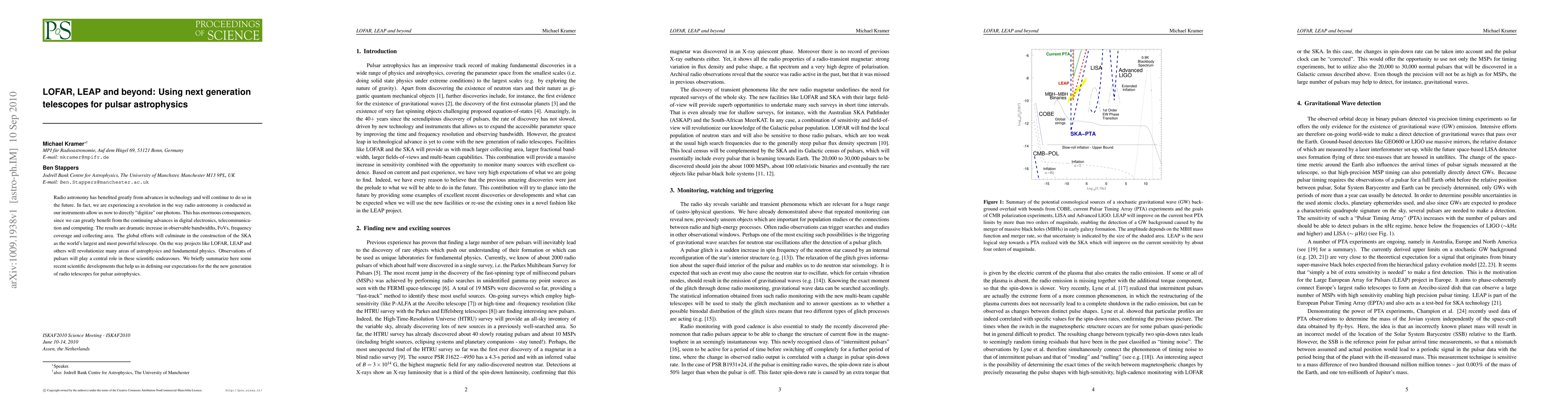 Radio astronomy has benefited greatly from advances in technology and will continue to do so in the future. In fact, we are experiencing a revolution in the way radio astronomy is conducted as our instruments allow us now to directly "digitize" our photons. This has enormous consequences, since we can greatly benefit from the continuing advances in digital electronics, telecommunication and computing. The results are dramatic increase in observable bandwidths, FoVs, frequency coverage and collecting area. The global efforts will culminate in the construction of the SKA as the world's largest and most powerful telescope. On the way projects like LOFAR, LEAP and others will revolutionize many areas of astrophysics and fundamental physics. Observations of pulsars will play a central role in these scientific endeavours. We briefly summarize here some recent scientific developments that help us in defining our expectations for the the new generation of radio telescopes for pulsar astrophysics.