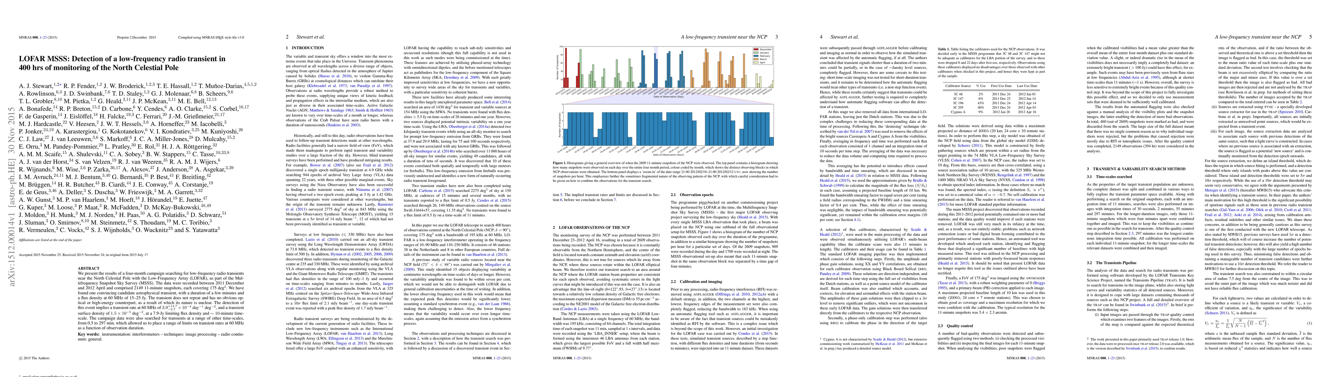 The LOFAR MSSS campaign detected a single, non-repeating low-frequency radio transient near the North Celestial Pole, with a flux density of 15-25 Jy at 60 MHz, suggesting a transient rate of 3.9 x 10^-4 day^-1 deg^-2. The transient's nature remains unclear due to the absence of optical or high-energy counterparts.