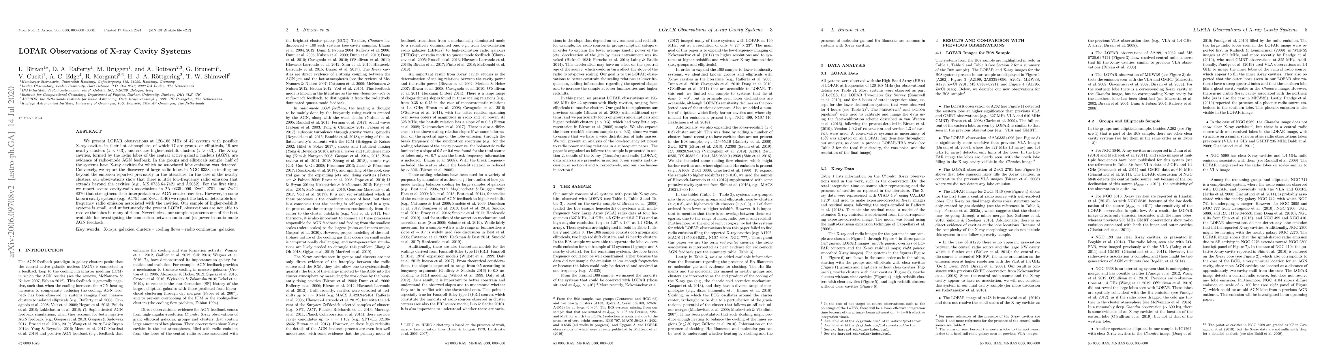 This study uses LOFAR observations to investigate X-ray cavity systems in galaxies, finding that some cavities have no associated radio emission while others show large radio lobes extending far beyond previous reports.