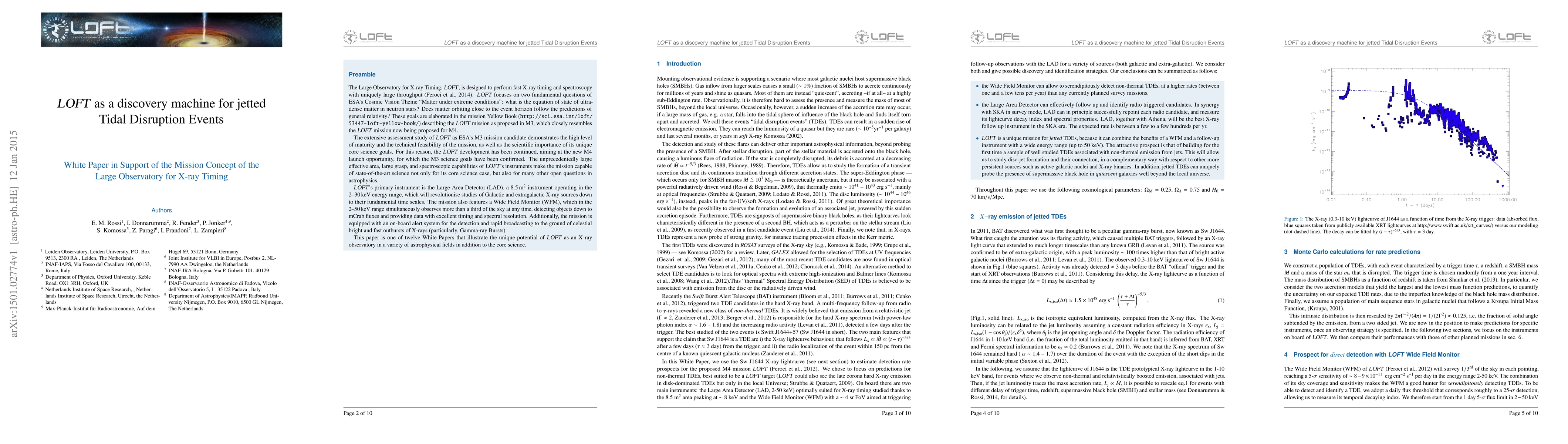 Summary: This paper supports the LOFT mission concept, highlighting its potential to discover and study jetted tidal disruption events through advanced X-ray timing observations, thereby contributing significantly to our understanding of these rare cosmic phenomena.