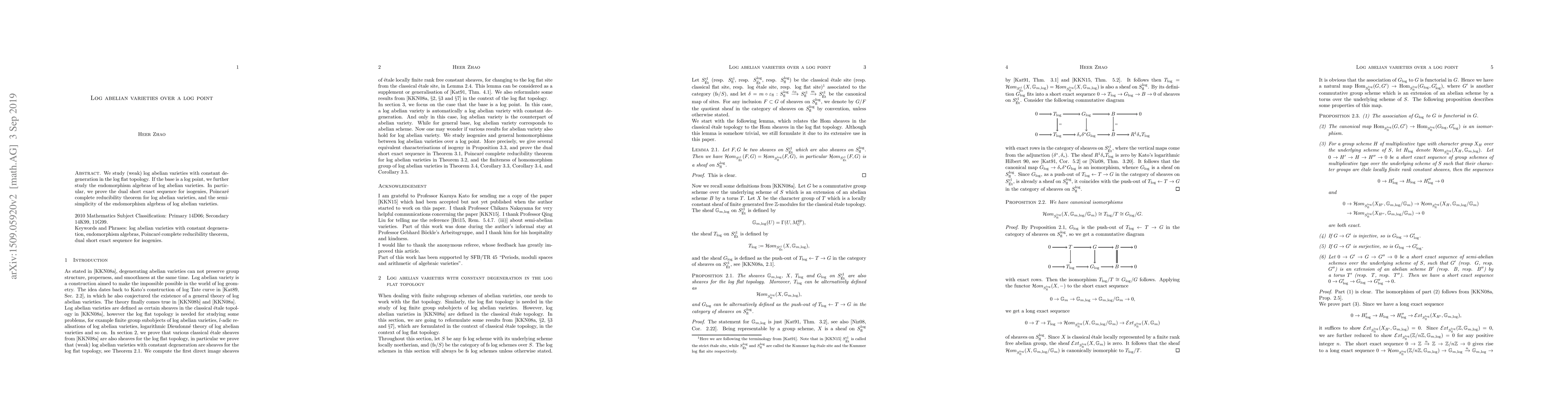 The paper develops key theorems and proofs regarding the structure and endomorphism algebras of log abelian varieties with constant degeneration over a log point.