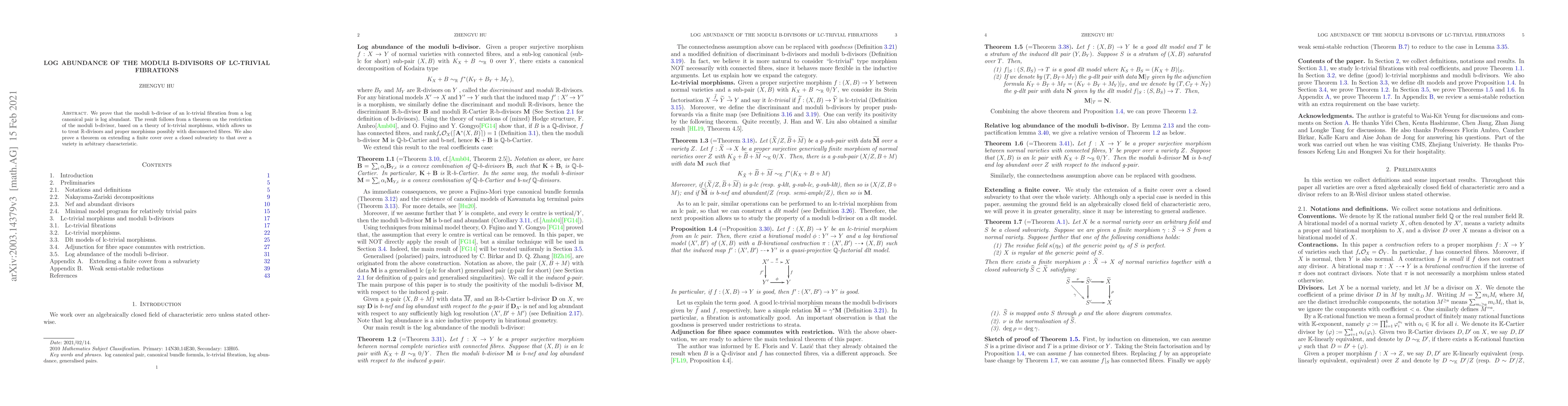 This research proves that moduli b-divisors of lc-trivial fibrations from log canonical pairs are log abundant. It also establishes a theorem on extending finite covers over closed subvarieties to varieties in arbitrary characteristic.