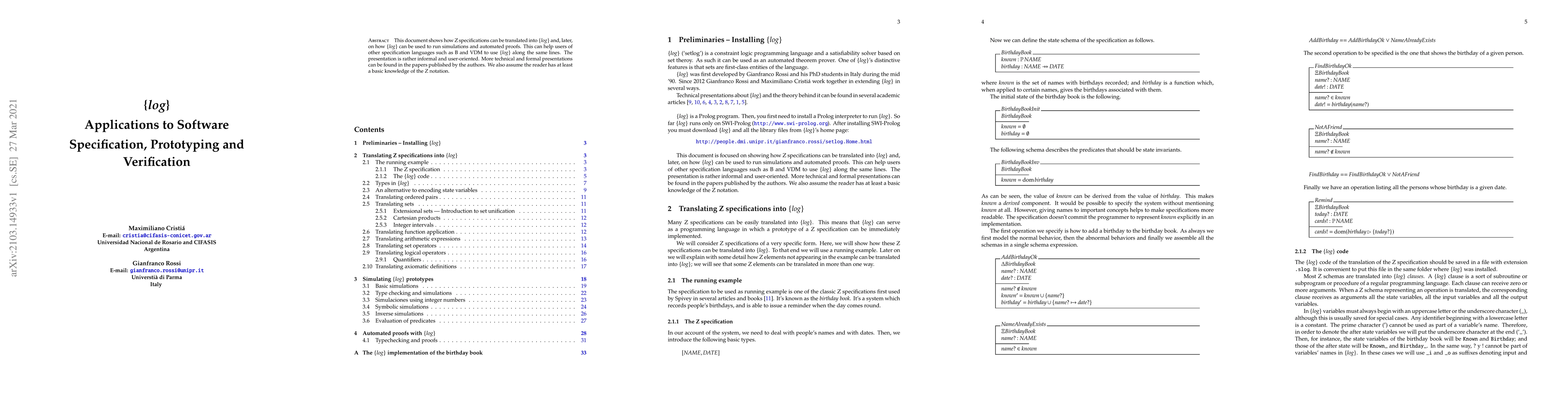 This document shows how Z specifications can be translated into $\{log\}$ and, later, on how $\{log\}$ can be used to run simulations and automated proofs. This can help users of other specification languages such as B and VDM to use $\{log\}$ along the same lines. The presentation is rather informal and user-oriented. More technical and formal presentations can be found in the papers published by the authors. We also assume the reader has at least a basic knowledge of the Z notation.