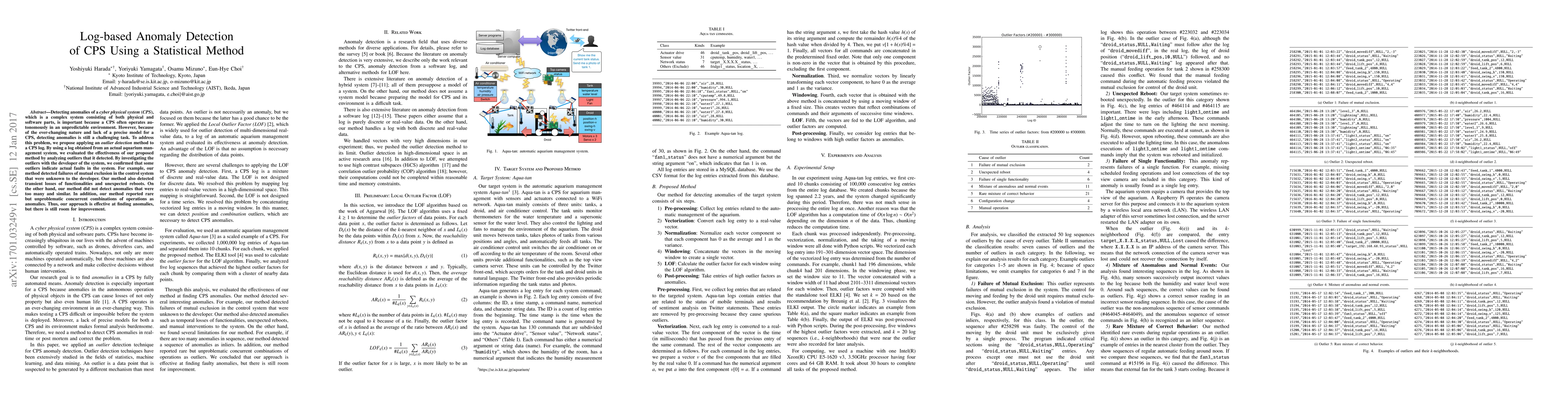 A new method using outlier detection on CPS logs successfully identified actual faults in an aquarium management system, detecting failures and transient losses of functionality, but with room for improvement to avoid reporting similar anomalies or rare operational variations.
