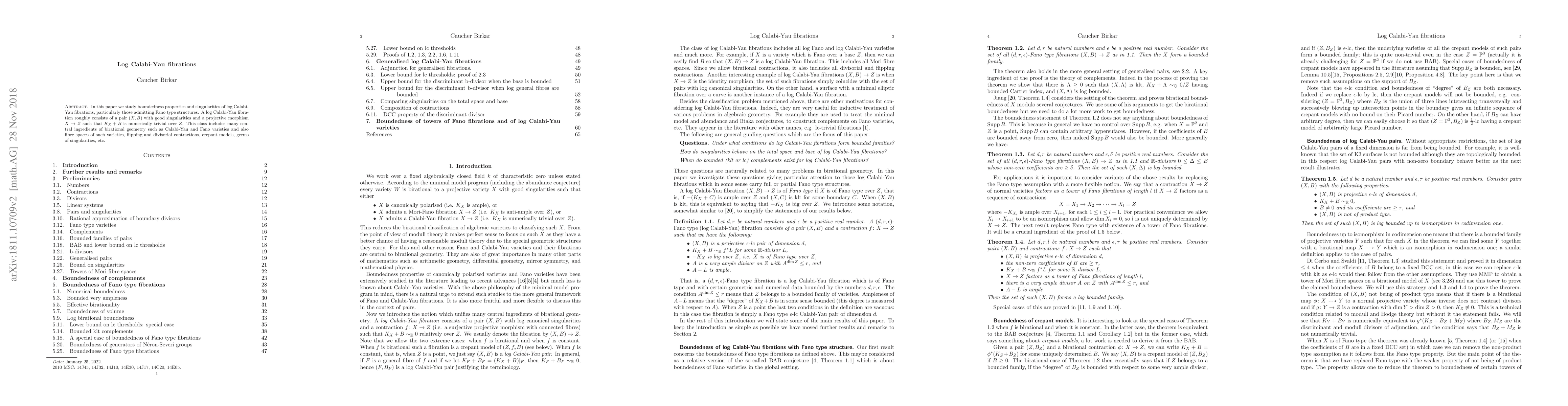 Summary: This paper investigates the boundedness and singularities of log Calabi-Yau fibrations, focusing on those with Fano type structures, and examines key components of birational geometry like Calabi-Yau and Fano varieties and various contractions.
