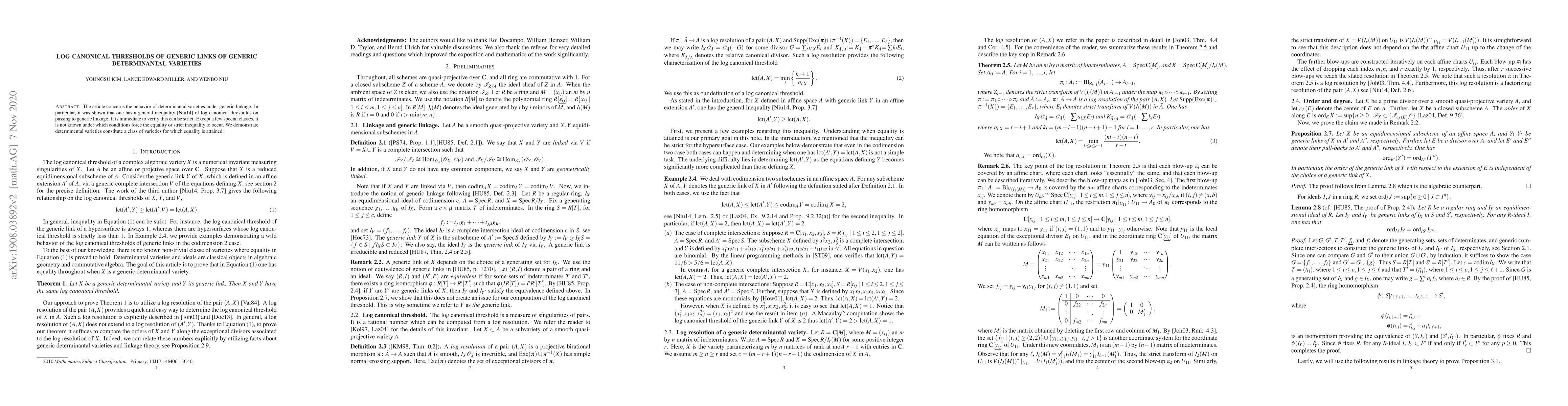 We show that the log canonical threshold of a generic determinantal variety and its generic link are the same.