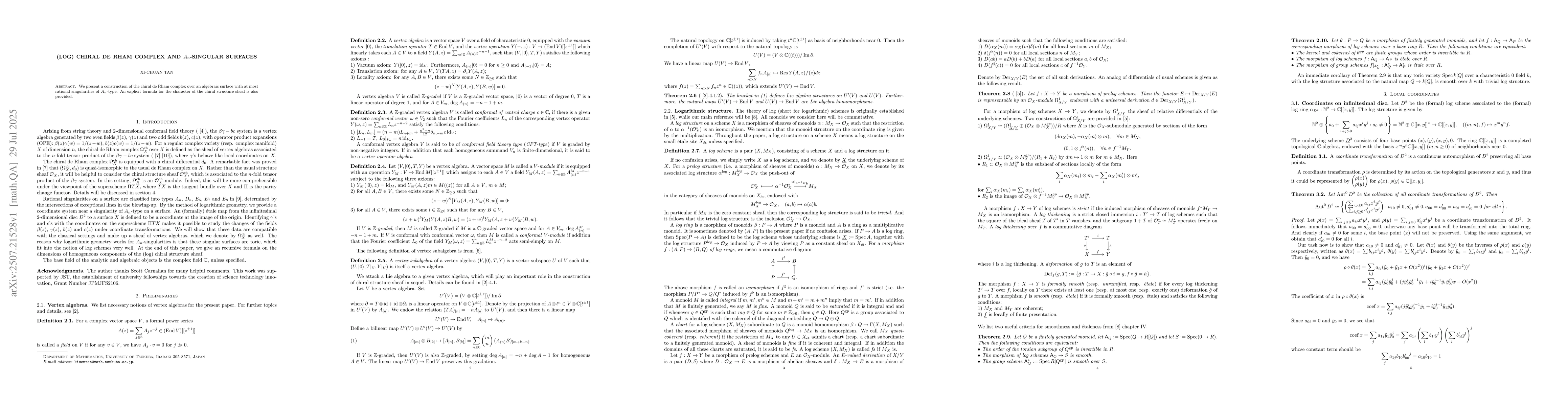 We present a construction of the chiral de Rham complex over an algebraic surface with at most rational singularities of $A_n$-type. An explicit formula for the character of the chiral structure sheaf is also provided.