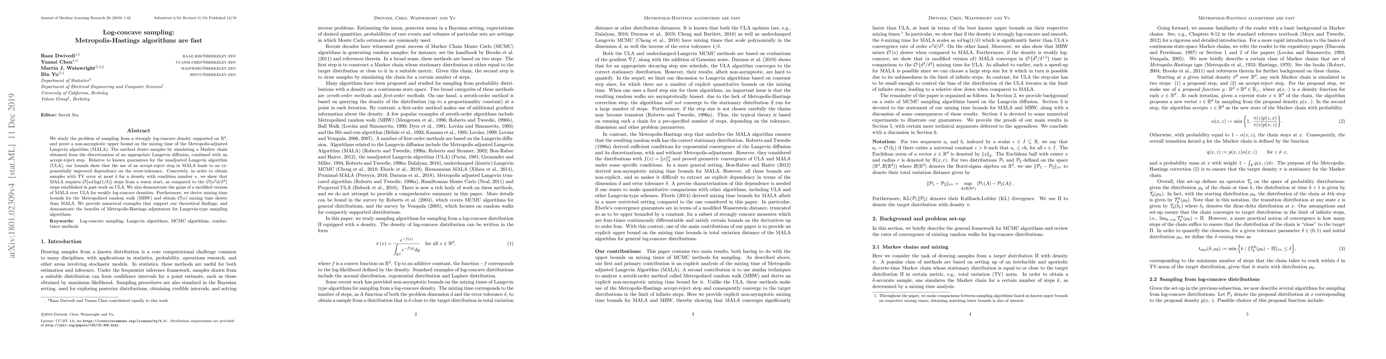 We consider the problem of sampling from a strongly log-concave density in $\mathbb{R}^d$, and prove a non-asymptotic upper bound on the mixing time of the Metropolis-adjusted Langevin algorithm (MALA). The method draws samples by simulating a Markov chain obtained from the discretization of an appropriate Langevin diffusion, combined with an accept-reject step. Relative to known guarantees for the unadjusted Langevin algorithm (ULA), our bounds show that the use of an accept-reject step in MALA leads to an exponentially improved dependence on the error-tolerance. Concretely, in order to obtain samples with TV error at most $\delta$ for a density with condition number $\kappa$, we show that MALA requires $\mathcal{O} \big(\kappa d \log(1/\delta) \big)$ steps, as compared to the $\mathcal{O} \big(\kappa^2 d/\delta^2 \big)$ steps established in past work on ULA. We also demonstrate the gains of MALA over ULA for weakly log-concave densities. Furthermore, we derive mixing time bounds for the Metropolized random walk (MRW) and obtain $\mathcal{O}(\kappa)$ mixing time slower than MALA. We provide numerical examples that support our theoretical findings, and demonstrate the benefits of Metropolis-Hastings adjustment for Langevin-type sampling algorithms.