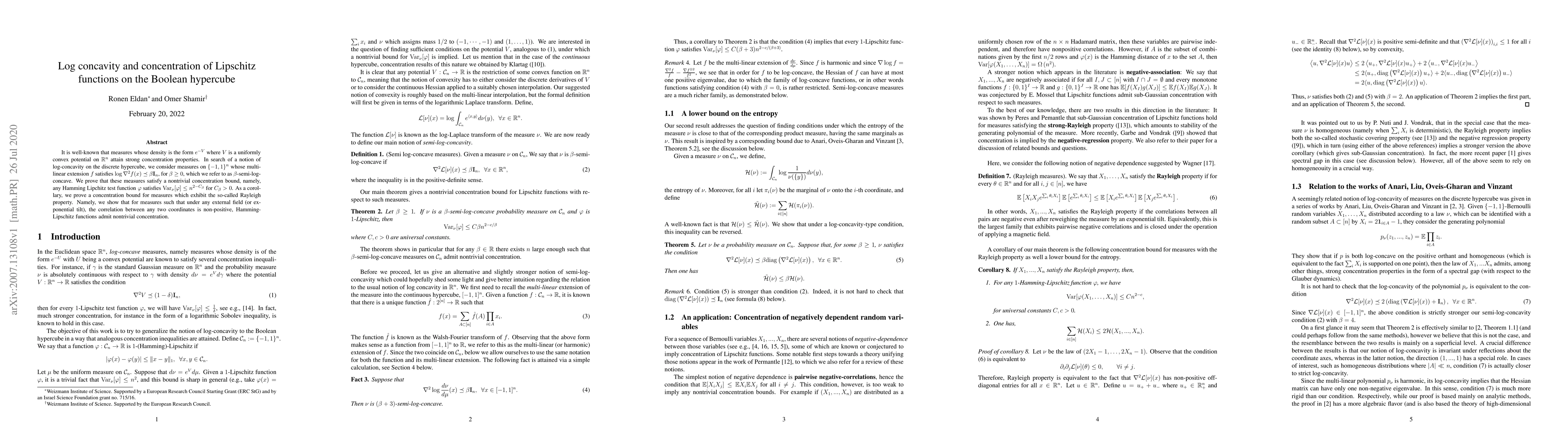 This paper explores the concept of log-concavity on the Boolean hypercube by introducing $\beta$-semi-log-concave measures, which satisfy $\log \nabla^2 f(x) \preceq \beta \Id$. It demonstrates that these measures exhibit strong concentration properties for Hamming Lipschitz test functions.