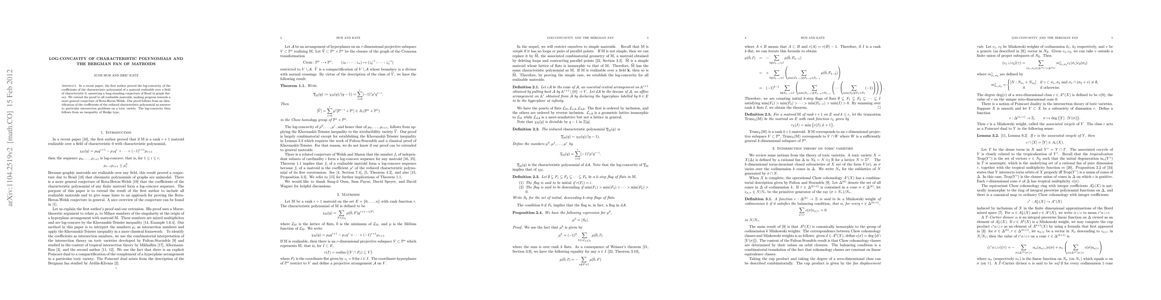 Summary: The paper proves the log-concavity of the coefficients of characteristic polynomials for all realizable matroids, extending a previous result and advancing towards a broader conjecture. The proof leverages intersection problems on a toric variety and Hodge-type inequalities.