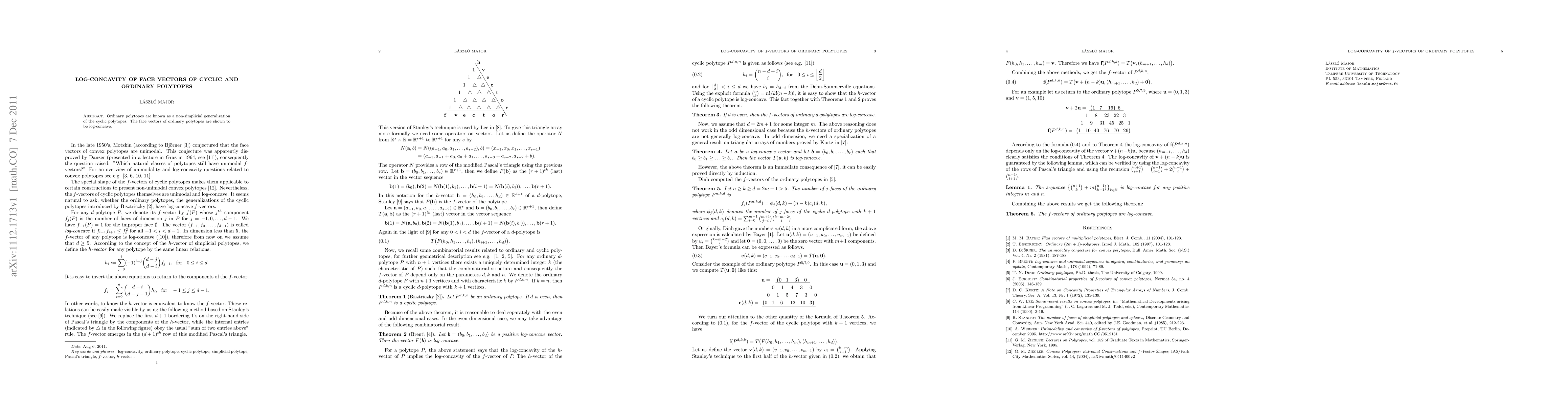 Summary: This research demonstrates that the face vectors of ordinary polytopes, a non-simplicial generalization of cyclic polytopes, exhibit log-concavity, providing insight into their combinatorial structure. The result extends similar properties previously observed in cyclic polytopes.