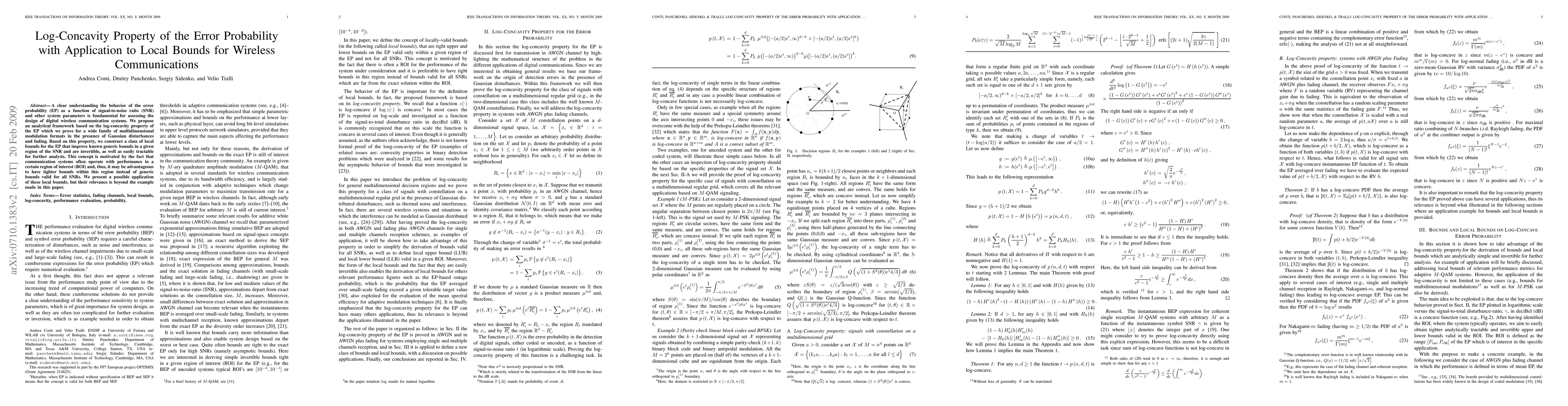 A clear understanding the behavior of the error probability (EP) as a function of signal-to-noise ratio (SNR) and other system parameters is fundamental for assessing the design of digital wireless communication systems.We propose an analytical framework based on the log-concavity property of the EP which we prove for a wide family of multidimensional modulation formats in the presence of Gaussian disturbances and fading. Based on this property, we construct a class of local bounds for the EP that improve known generic bounds in a given region of the SNR and are invertible, as well as easily tractable for further analysis. This concept is motivated by the fact that communication systems often operate with performance in a certain region of interest (ROI) and, thus, it may be advantageous to have tighter bounds within this region instead of generic bounds valid for all SNRs. We present a possible application of these local bounds, but their relevance is beyond the example made in this paper.