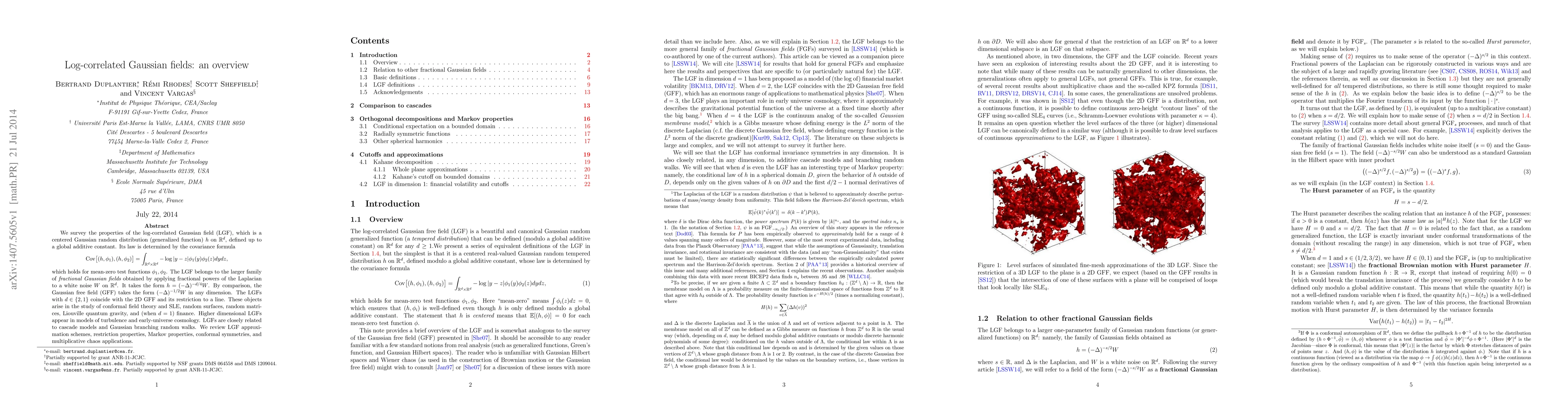 The paper provides an overview of log-correlated Gaussian fields (LGF) by examining their properties, covariance formulas, and connections to various fields such as conformal field theory, random matrices, and turbulence models.