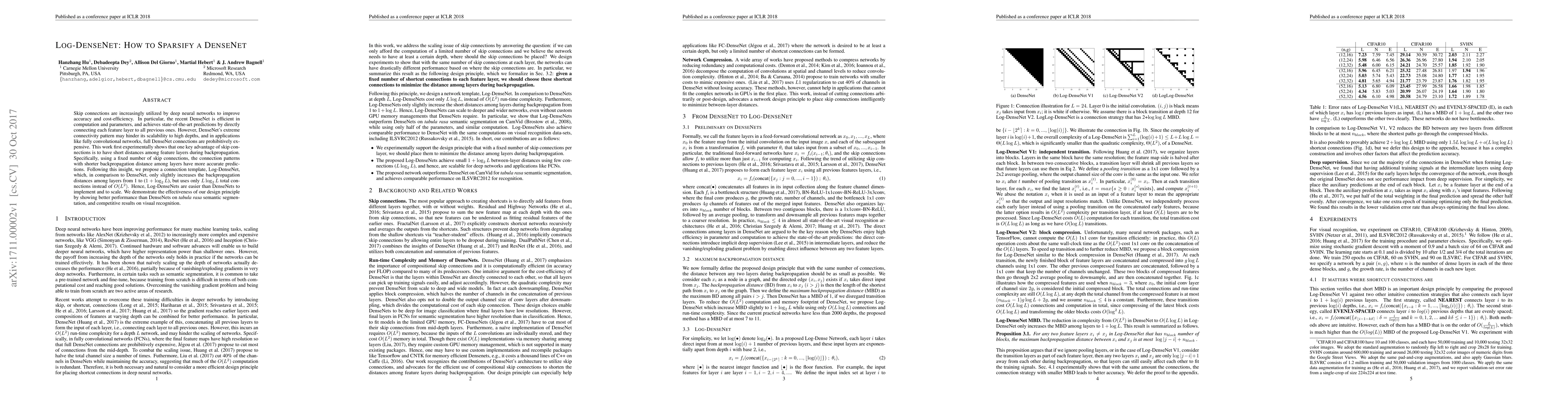 Log-DenseNet, a novel sparsified DenseNet architecture, which maintains short backpropagation distances among layers, improving accuracy and efficiency.