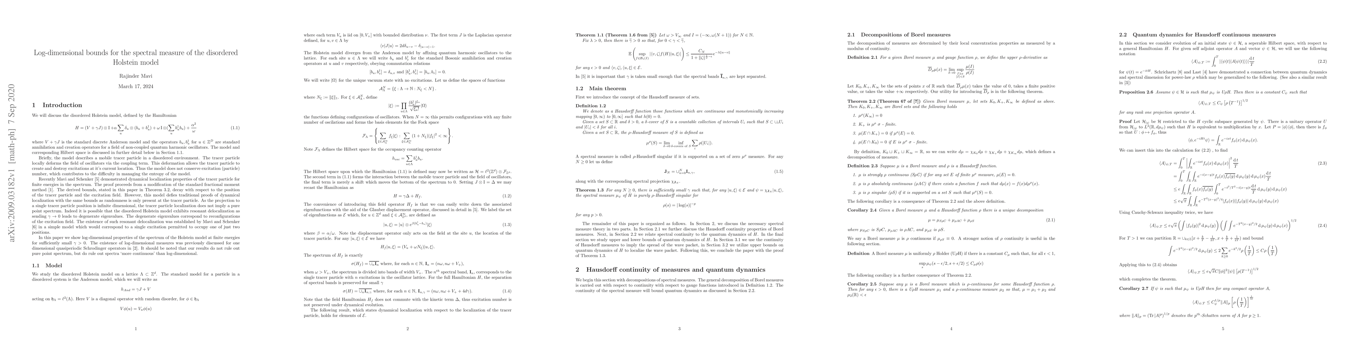 We demonstrate Hausdorff log dimensional bounds on the continuity of the spectral measure of the strongly disordered Holstein operator.