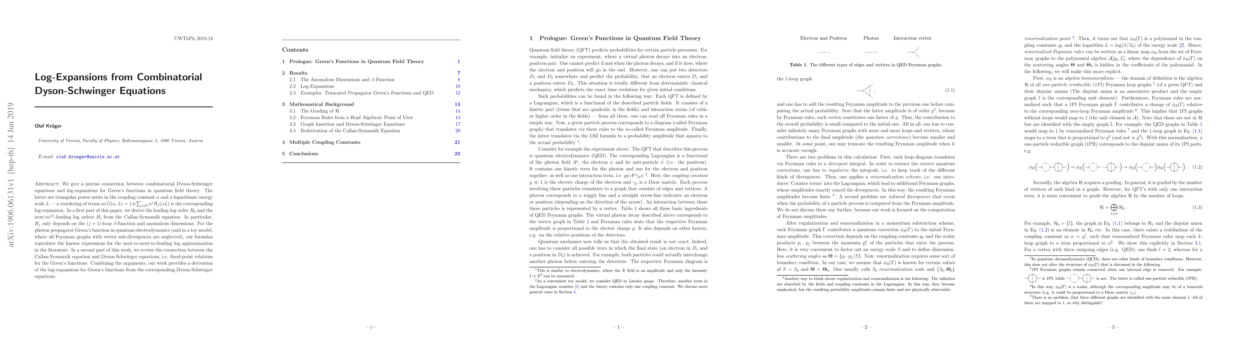This paper establishes a link between combinatorial Dyson-Schwinger equations and log-expansions for Green's functions in quantum field theory, showing how the latter can be reordered as triangular power series. It derives leading-log and next-to-leading log orders from the Callan-Symanzik equation and demonstrates the method's applicability in quantum electrodynamics.