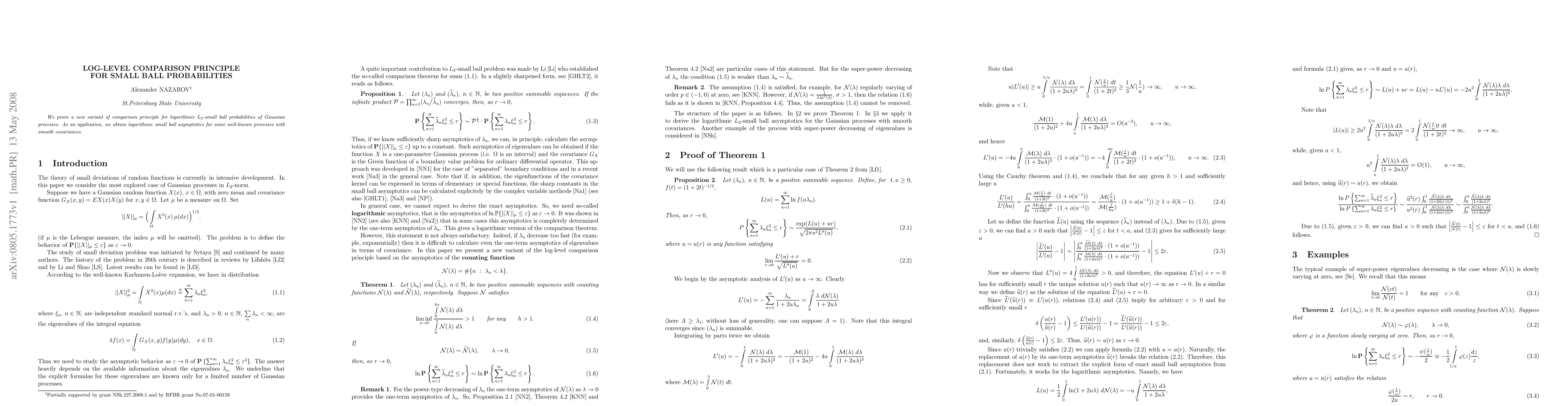 Summary: This paper establishes a novel comparison principle for logarithmic $L_2$-small ball probabilities in Gaussian processes, and uses it to derive logarithmic small ball asymptotics for several well-known processes with smooth covariance structures.