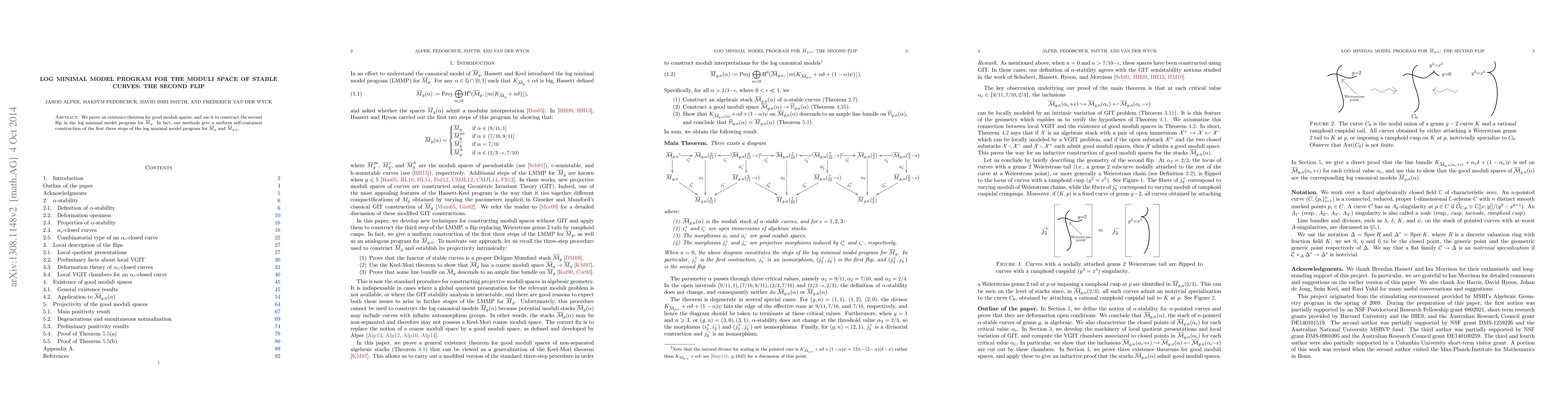 We prove an existence theorem for good moduli spaces, and use it to construct the second flip in the log minimal model program for the moduli space of stable curves. In fact, our methods give a uniform, self-contained construction of the first three steps of the log minimal model program for the moduli spaces of stable pointed curves.