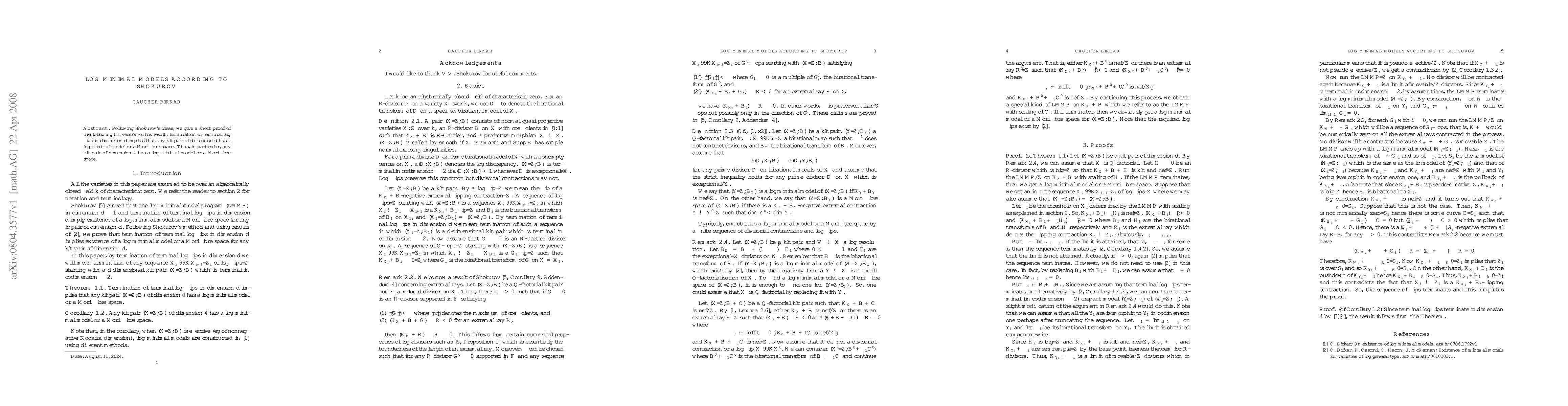 Following Shokurov's ideas, we give a short proof of the following klt version of his result: termination of terminal log flips in dimension d implies that any klt pair of dimension d has a log minimal model or a Mori fibre space. Thus, in particular, any klt pair of dimension 4 has a log minimal model or a Mori fibre space.