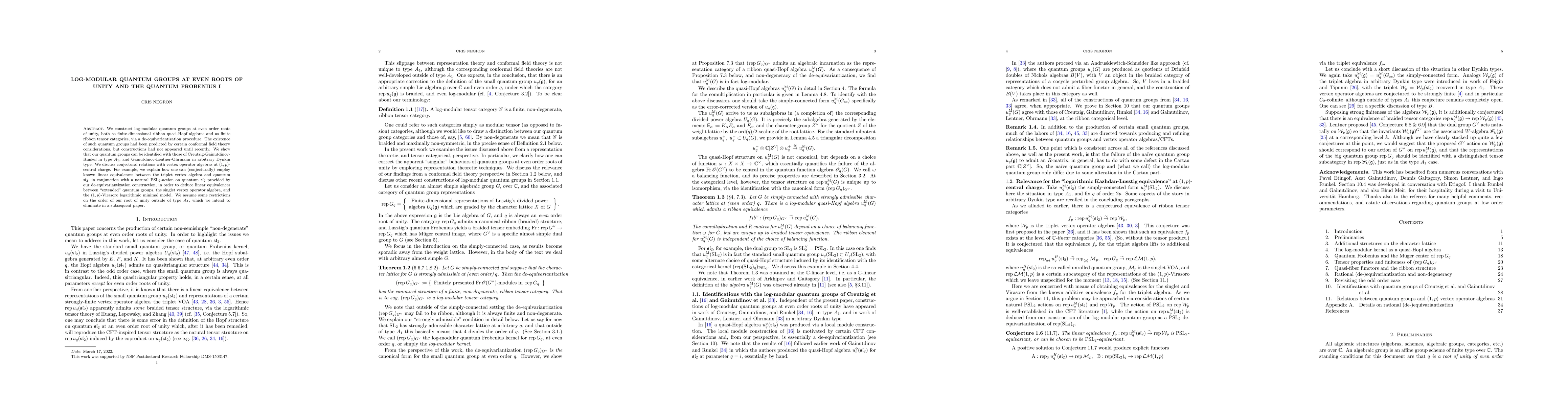 Researchers construct quantum groups at even order roots of unity as finite-dimensional algebras and categories, connecting them to known constructions in conformal field theory.