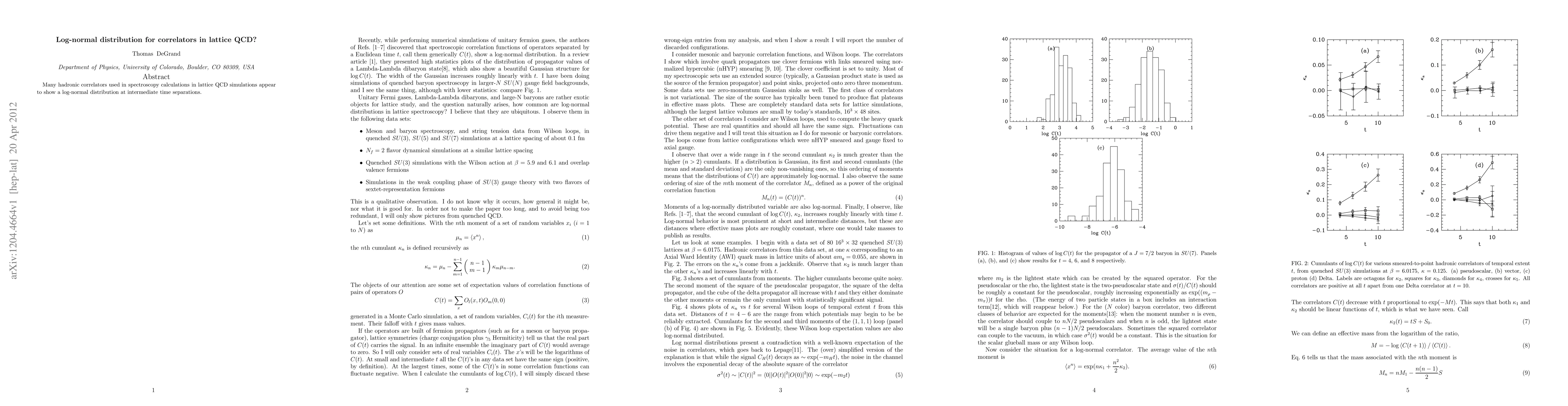 Many hadronic correlators used in spectroscopy calculations in lattice QCD simulations appear to show a log-normal distribution at intermediate time separations.