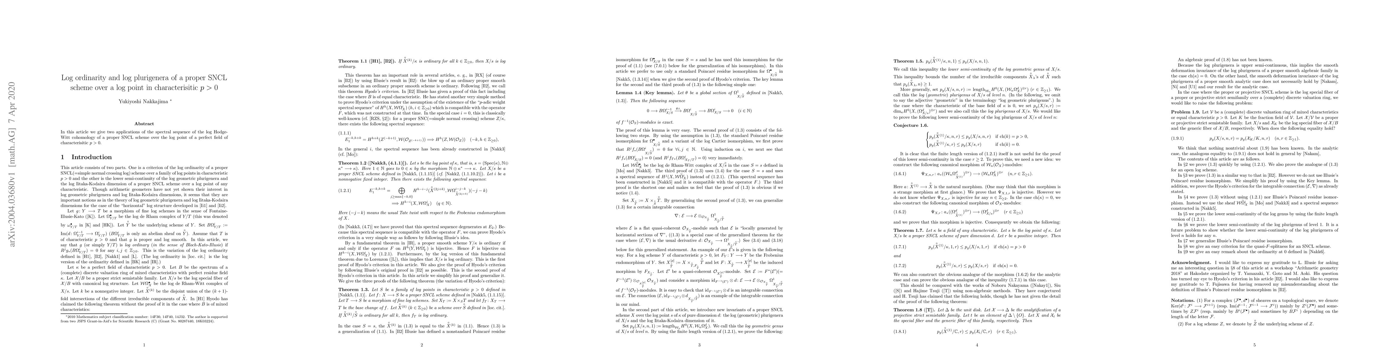 In this article we give two applications of the spectral sequence of the log Hodge-Witt cohomology of a proper SNCL scheme over the log point of a perfect field of characterisitic $p>0$.