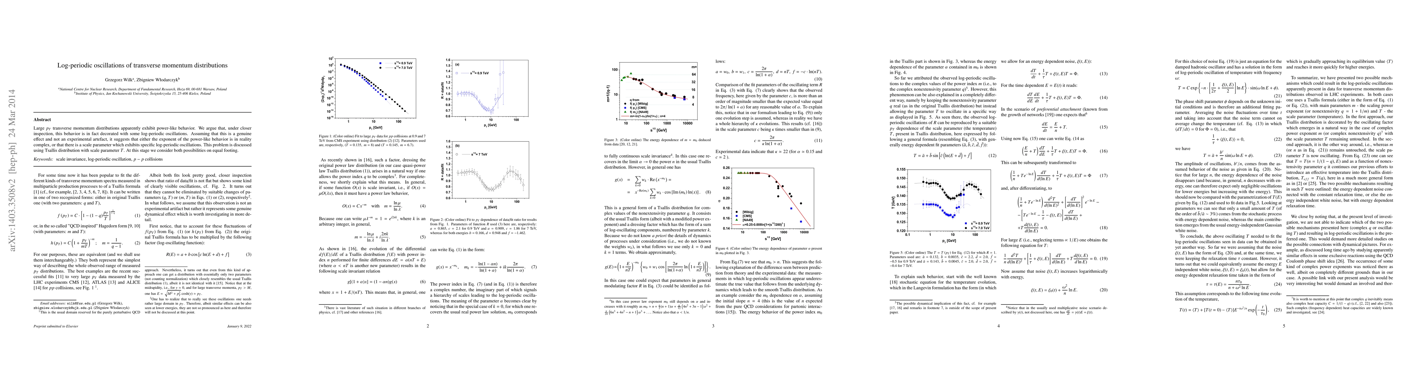 Large p_T transverse momentum distributions exhibit apparently a power-like behavior. We argue that, under closer inspection, this behavior is in fact decorated with some log-periodic oscillations. Assuming that this is genuine effect and not experimental artefact, it suggests that either the exponent of the power-like behavior is in reality complex number or that there is a scale parameter which exhibits specific log-eriodic oscillations. This problem is discussed using Tsallis distributions with scale parameter being a temperature T. At this stage we consider both possibilities on equal footing.
