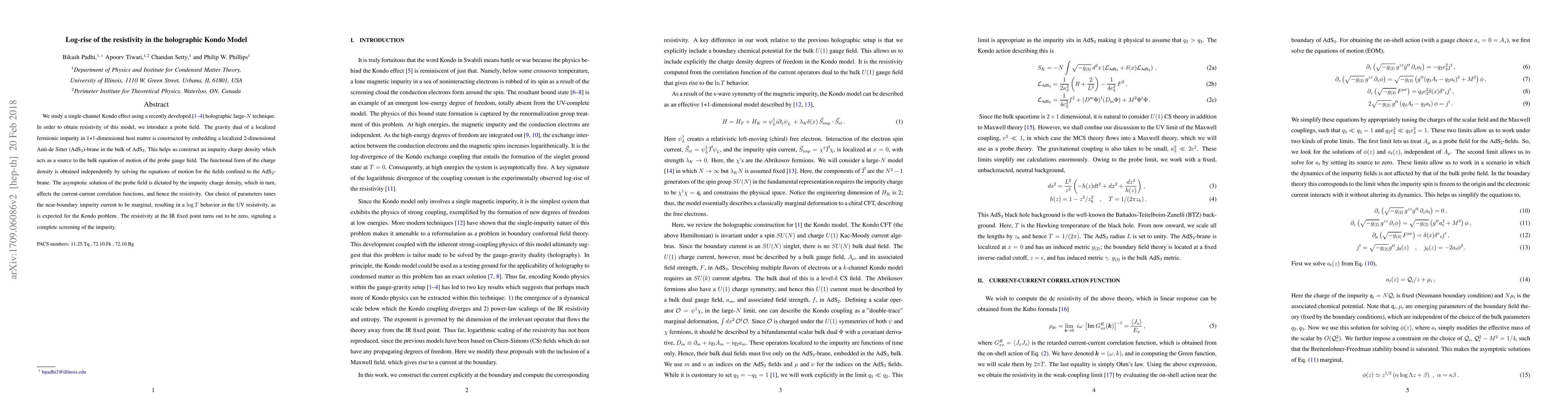 We study a single-channel Kondo effect using a recently developed holographic large-$N$ technique. In order to obtain resistivity of this model, we introduce a probe field. The gravity dual of a localized fermionic impurity in 1+1-dimensional host matter is constructed by embedding a localized 2-dimensional Anti-de Sitter (\ads{2})-brane in the bulk of \ads{3}. This helps us construct an impurity charge density which acts as a source to the bulk equation of motion of the probe gauge field. The functional form of the charge density is obtained independently by solving the equations of motion for the fields confined to the \ads{2}-brane. The asymptotic solution of the probe field is dictated by the impurity charge density, which in turn, affects the current-current correlation functions, and hence the resistivity. Our choice of parameters tunes the near-boundary impurity current to be marginal, resulting in a $\log T$ behavior in the UV resistivity, as is expected for the Kondo problem. The resistivity at the IR fixed point turns out to be zero, signaling a complete screening of the impurity.